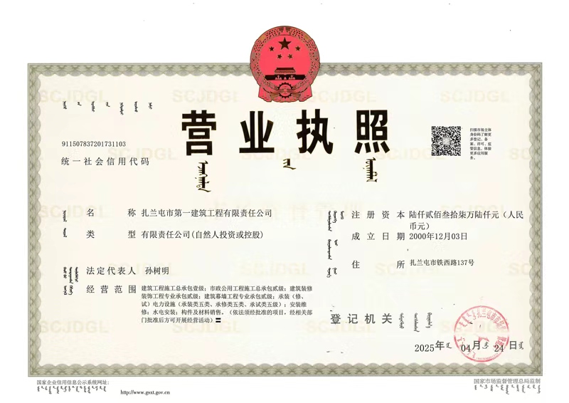 公司的前身是扎蘭屯市第一建筑工程公司,始建于1958年3月1日。2000年12月轉(zhuǎn)制為有限責任公司,是房屋建筑工程施工總承包壹級、房地產(chǎn)開發(fā)貳級、市政公用工程施工總承包貳級、商品砼攪拌站、建筑裝修裝飾工程專業(yè)承包貳級、起重設(shè)備安裝工程專業(yè)承包貳級企業(yè)。具有建筑、房地產(chǎn)開發(fā)、市政工程、商品砼、裝修裝飾等工程的綜合施工能力。公司有五十余年的建筑施工管理經(jīng)驗。